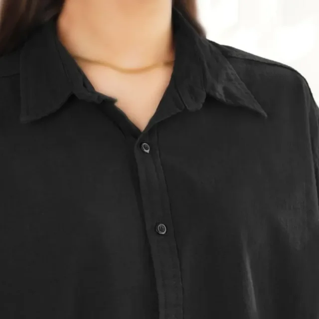 شومیز لینن مشکی ساده با سایز بندی L تا 2XL مناسب چهار فصل