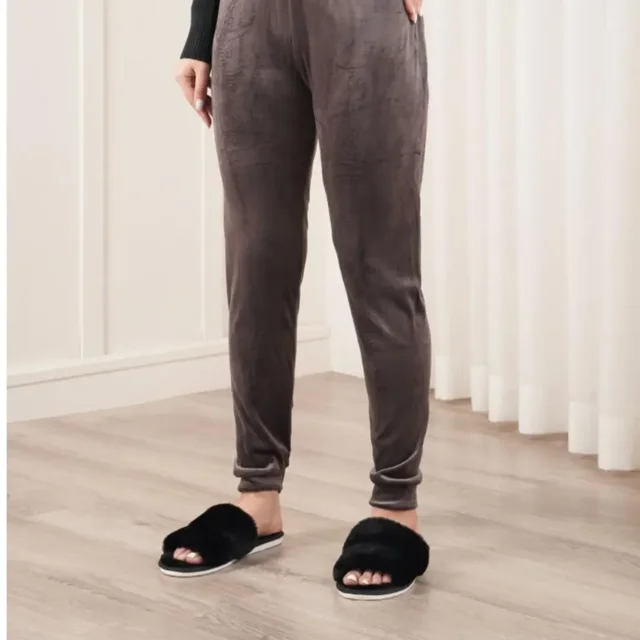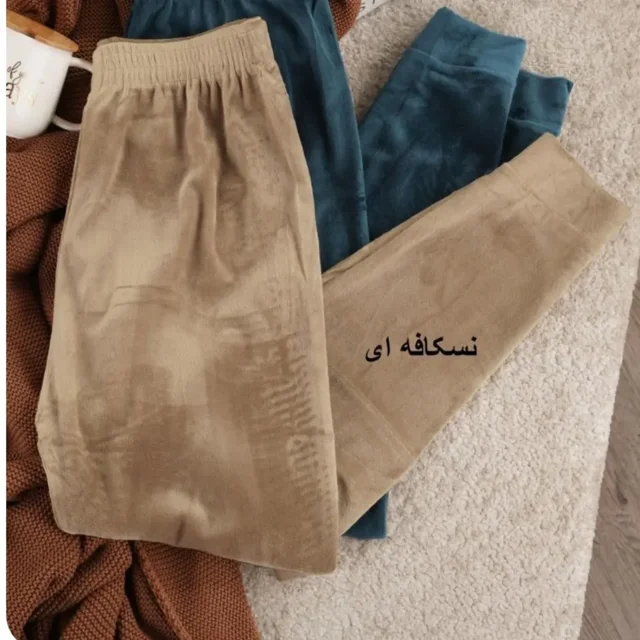 شلوار راحتی مخمل با قد حدود 95 سانتی متر و کمر کش، تک سایز مناسب برای سایز 38 تا 44، مناسب استفاده در خانه در فصول پاییز و زمستان.